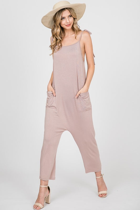 Relaxed Fit Jumpsuit With Tie Shoulder Straps