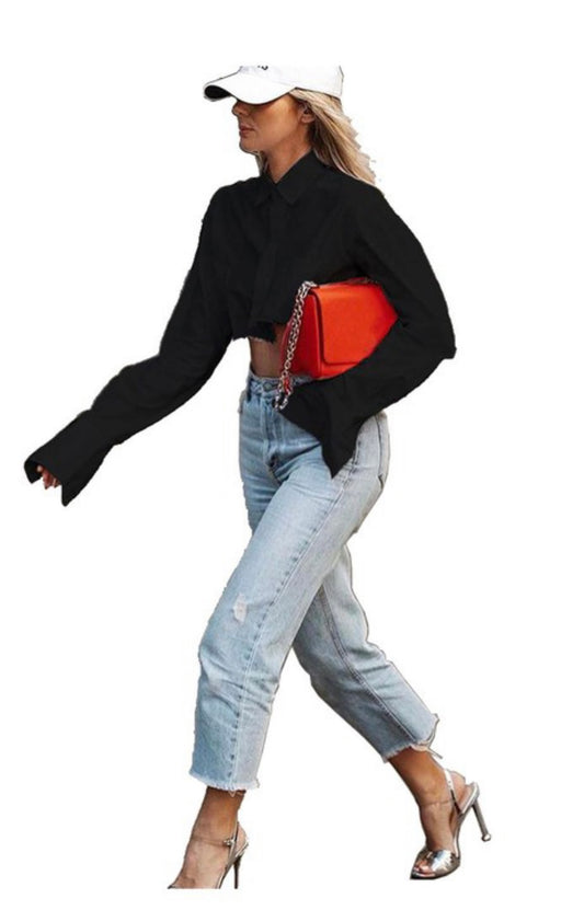 Long Sleeves Black Crop Top