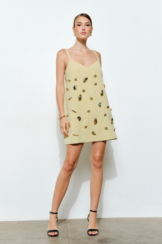 METALLIC GLITTER CROSSOVER FRONT CUT OUT DRESS