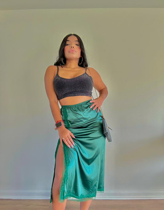 Feather Trim Satin Mesh Skirt