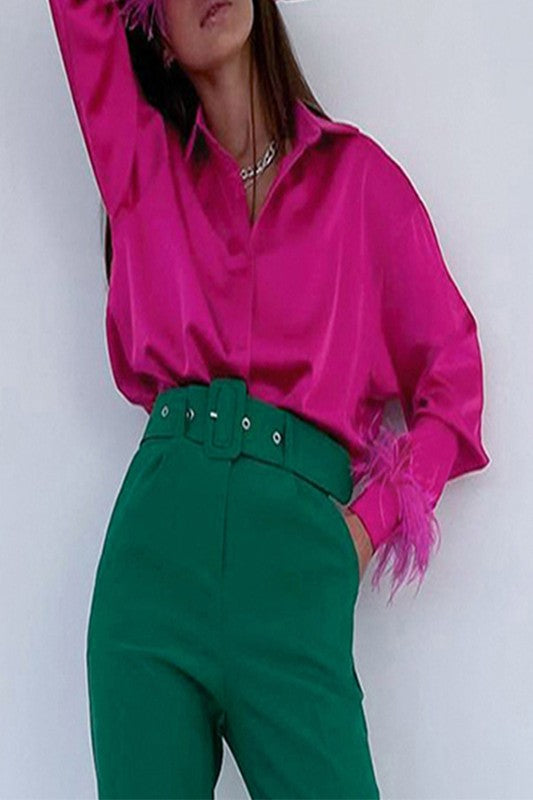Victoria Puff Long Sleeve Twist Front V Neck Top with Front Slit Maxi Skirt Set