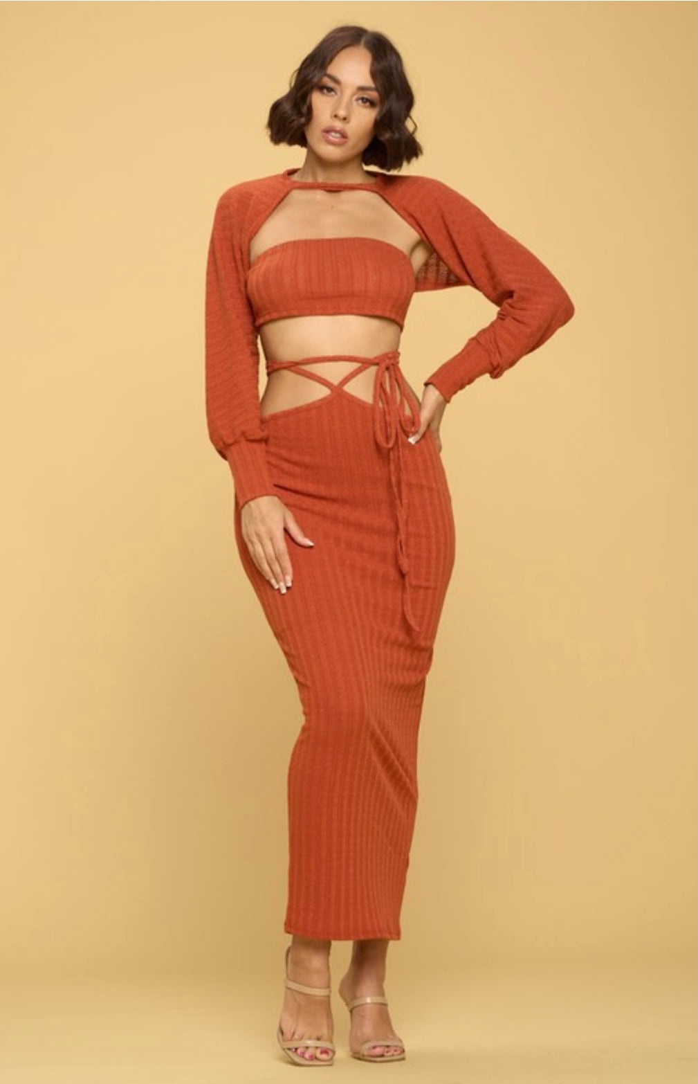 Strapless Crop Top, Bolero and Midi Pencil Skirt