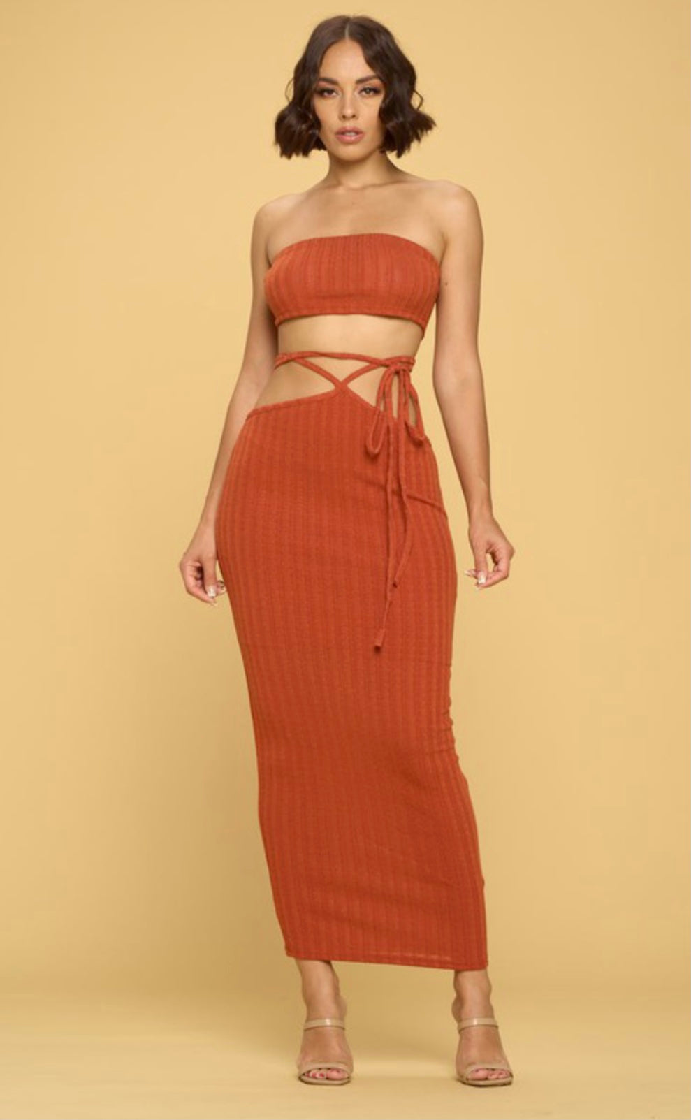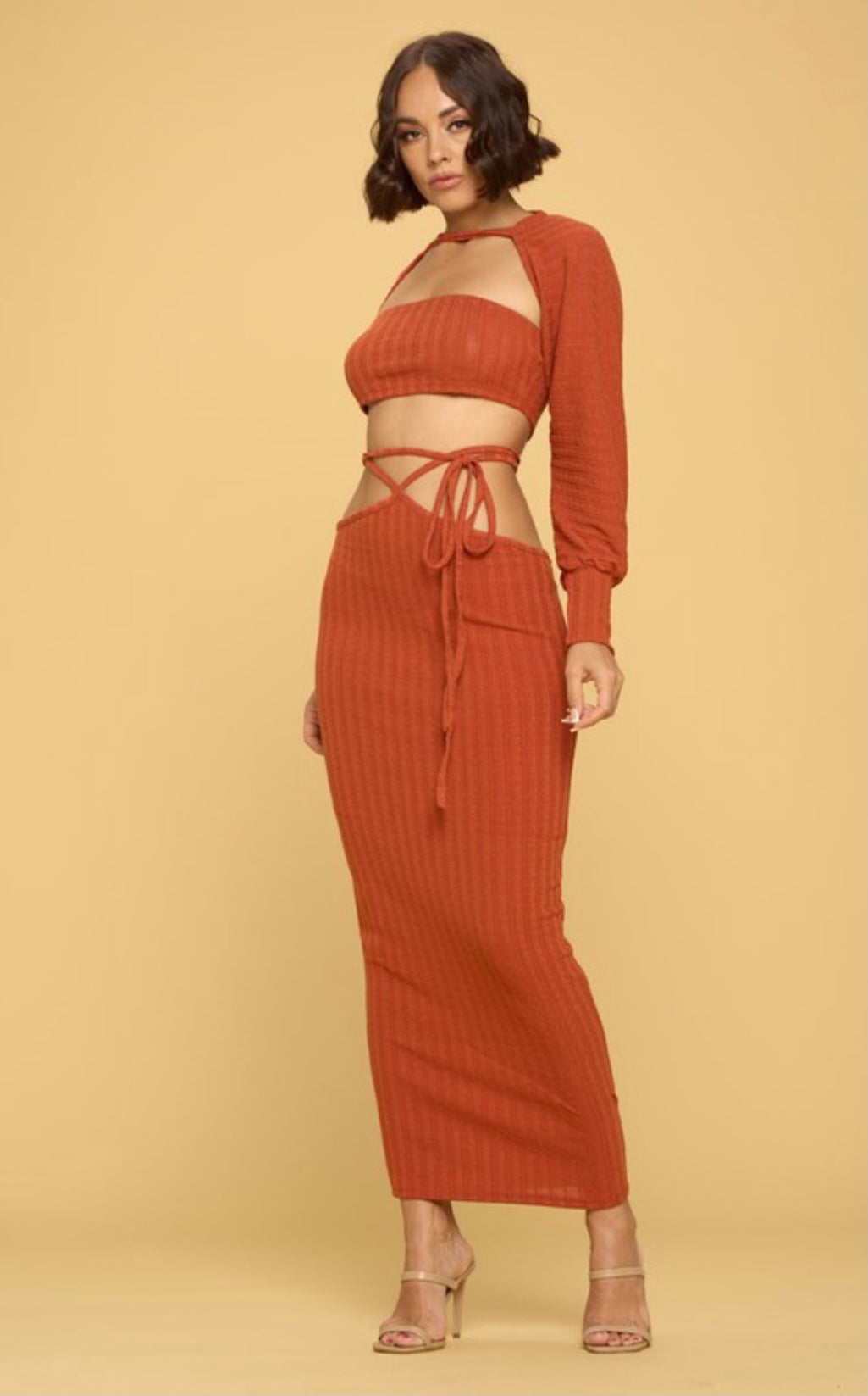 Y quién puede con esto, si esto es otra cosa. Tres piezas en una, que las usas juntas para hacer un estilo único o separadas y las combinas con lo que quieras. Osea demasiados estilos con un solo conjunto. Tiene rayon y spandex. El estilo de la falda es hermoso. Corre al size, aunque el crop top corre un poco pequeño.