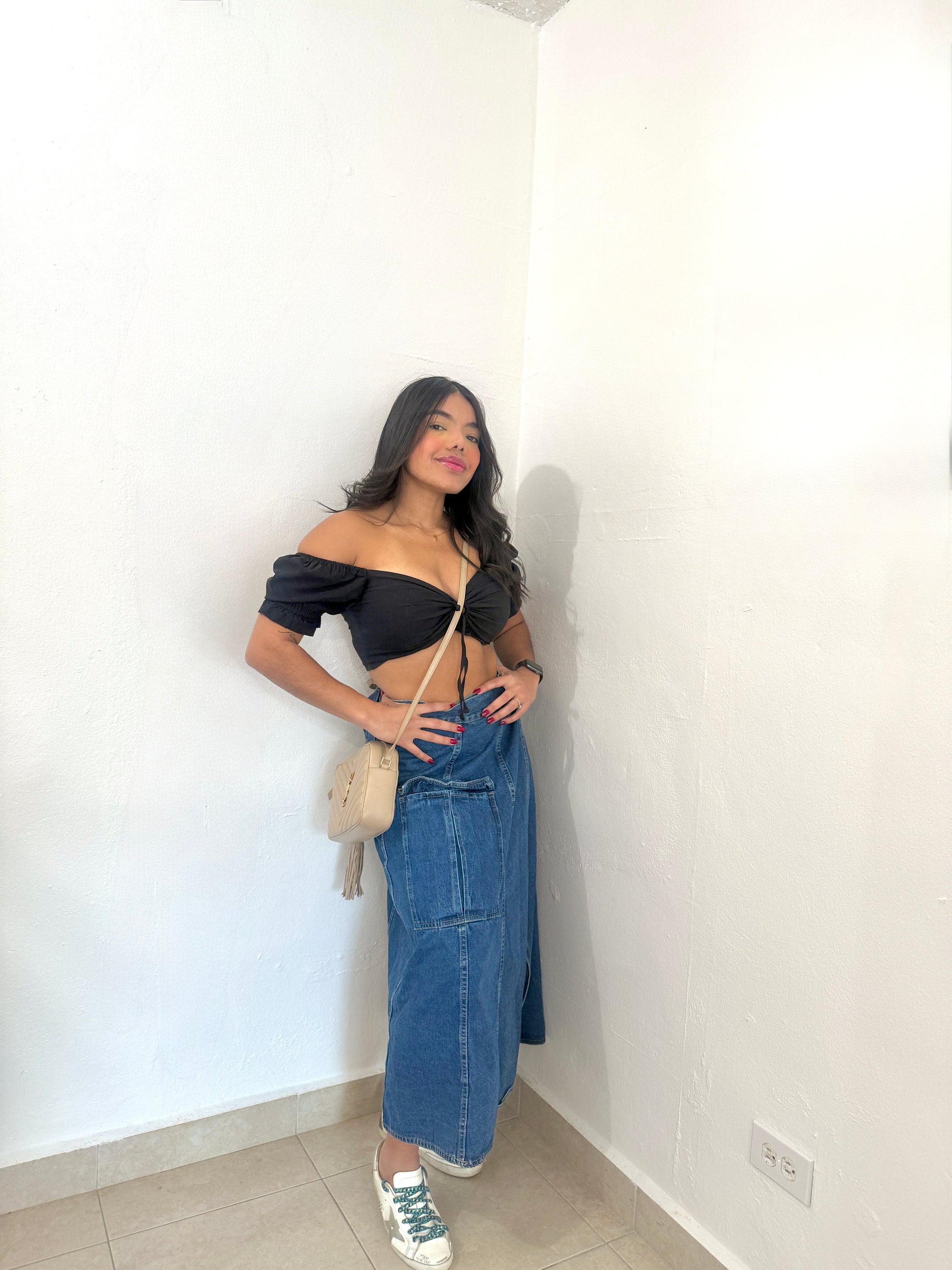 Siena Wrap Denim Skirt Falda de mahón confeccionada con un diseño wrap que abraza la silueta de manera favorecedora. Cuenta con bolsillos funcionales y un acabado versátil para usar de día y la noche. Su corte moderno y estructura impecable la convierten en una pieza esencial del guardarropa contemporáneo, capaz de adaptarse tanto a looks casuales como a combinaciones más sofisticadas con los accesorios adecuados.